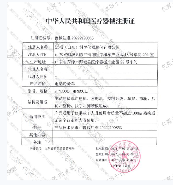 批準(zhǔn)文號(hào):魯械注準(zhǔn)20222190853